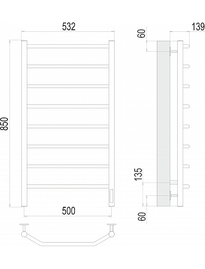 Полотенцесушитель электрический Виктория П8 500х850 электро
