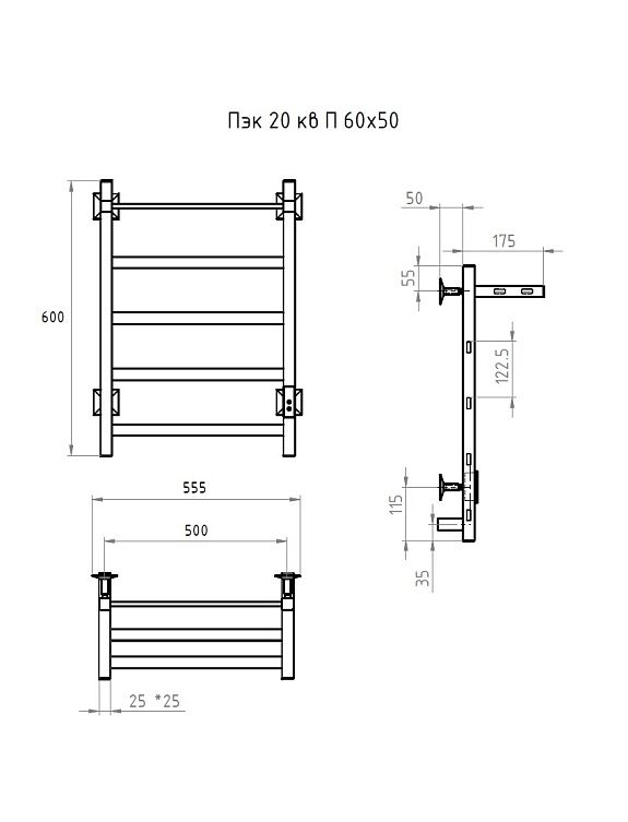 Полотенцесушитель Пэк сп 20 кв П 60х50 черный ВГП