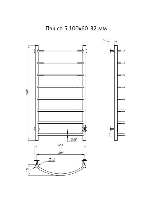 Полотенцесушитель Пэк сп 5 100х50 32 мм