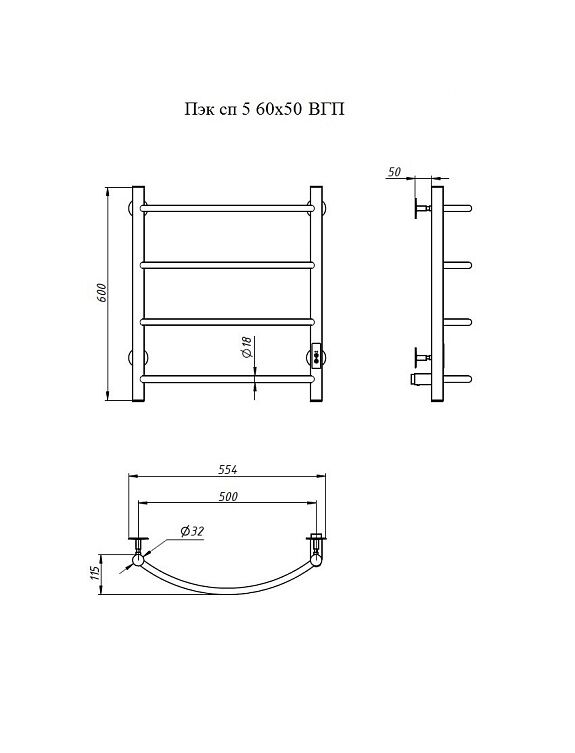 Полотенцесушитель Пэк сп 5 60х50 белый ВГП