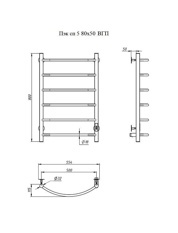 Полотенцесушитель Пэк сп 5 80х50 черный ВГП