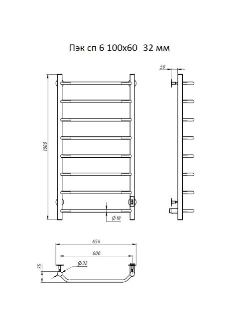 Полотенцесушитель Пэк сп 6 100х50 32 мм