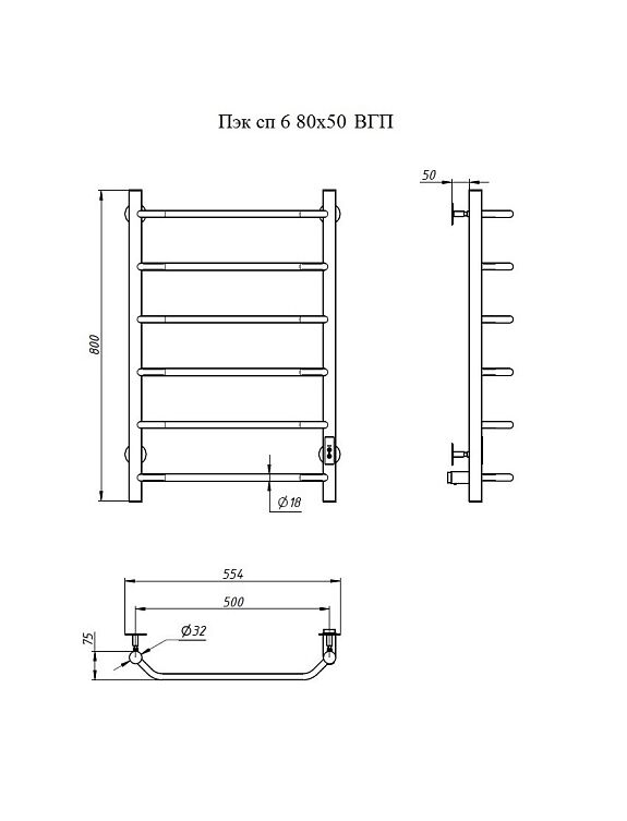 Полотенцесушитель Пэк сп 6 80х50 белый ВГП