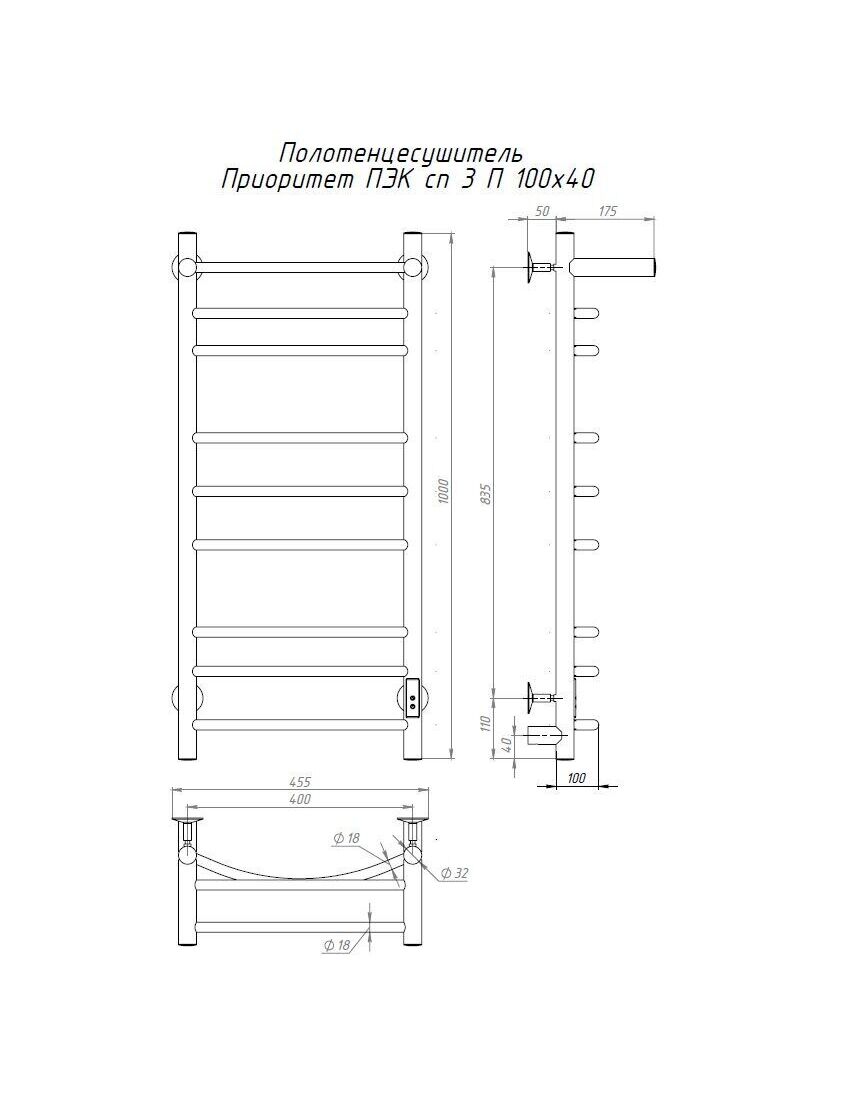 Полотенцесушитель Приоритет Пэк сп 3 П 100х40 32 мм
