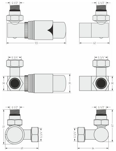 Автоматический терморегулятор Сунержа 3D левый G 1/2" НР х G 3/4" НГ (набор)