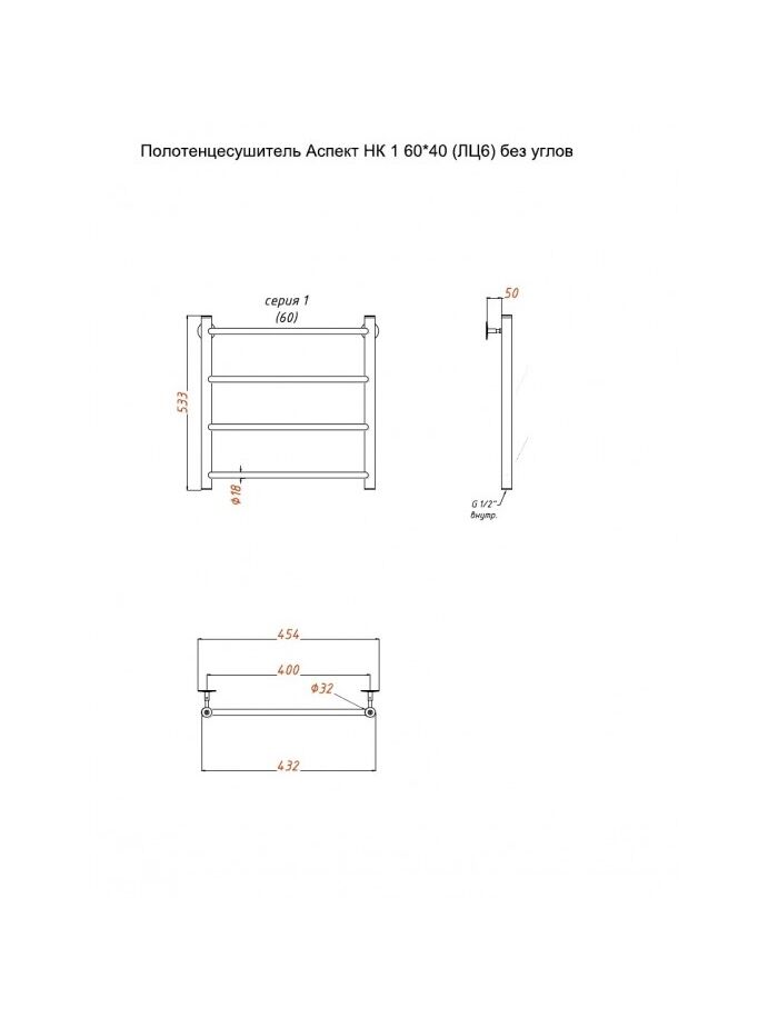 Полотенцесушитель Аспект НК 1 60*40 (ЛЦ6) без углов