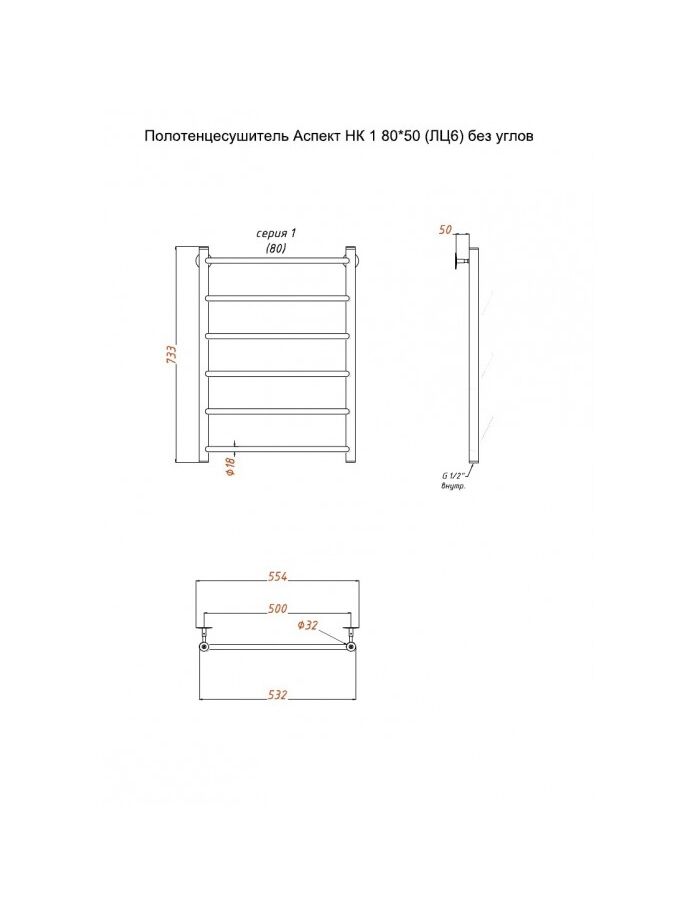 Полотенцесушитель Аспект НК 1 80*50 (ЛЦ6) без углов