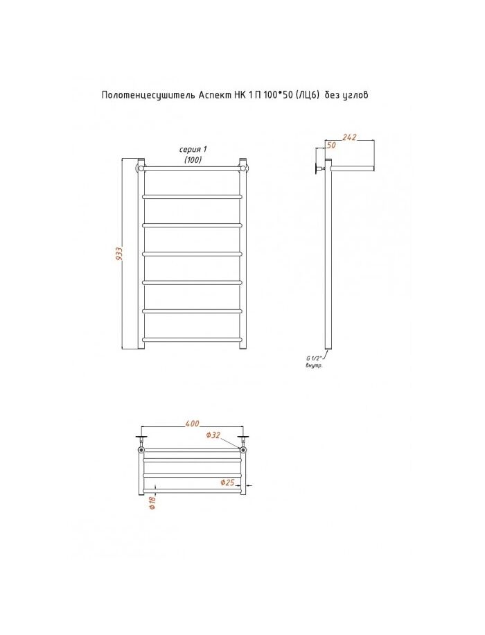Полотенцесушитель Аспект НК 1 П 100*50 (ЛЦ6) без углов