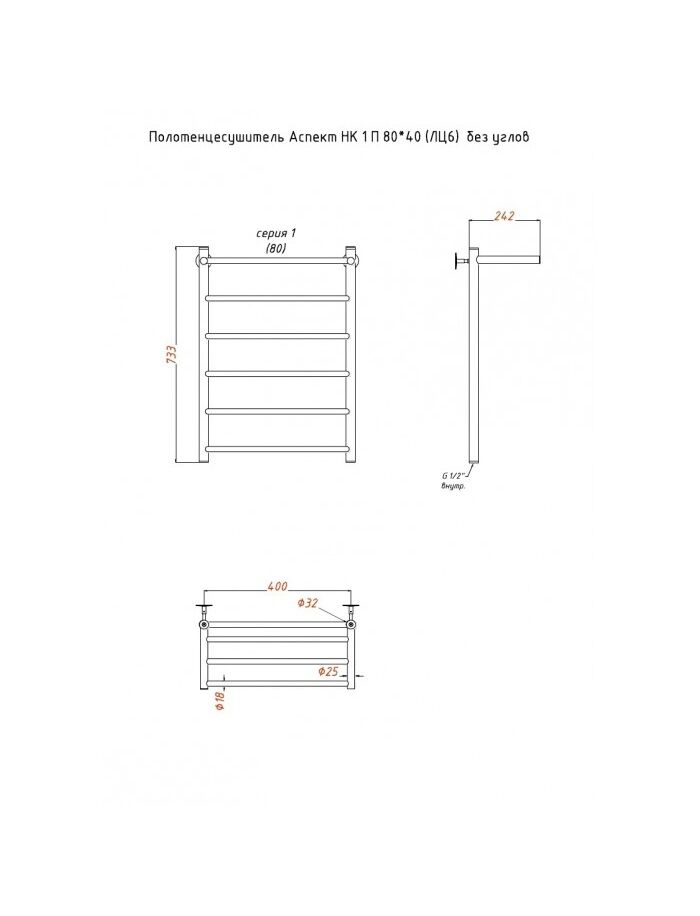 Полотенцесушитель Аспект НК 1 П 80*40 (ЛЦ6) без углов