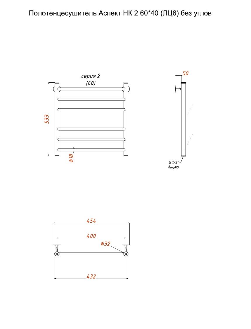 Полотенцесушитель Аспект НК 2 60*40 (ЛЦ6) без углов