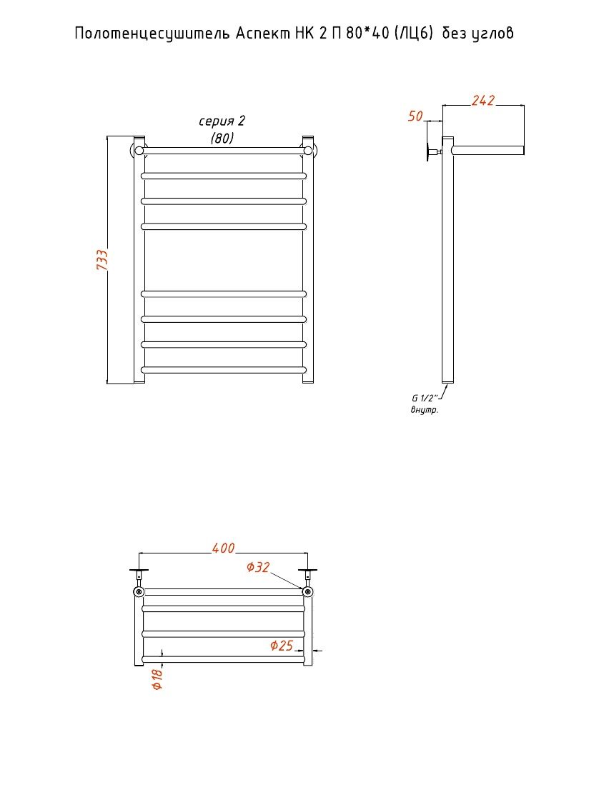 Полотенцесушитель Аспект НК 2 П 80*40 (ЛЦ6) без углов