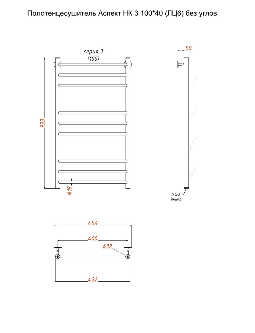 Полотенцесушитель Аспект НК 3 100*40 (ЛЦ6) без углов