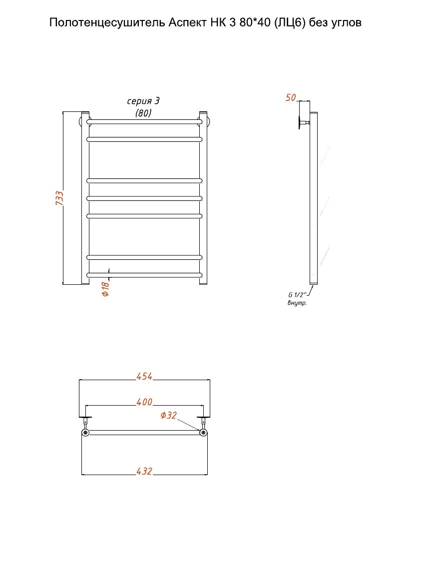 Полотенцесушитель Аспект НК 3 80*40 (ЛЦ6) без углов