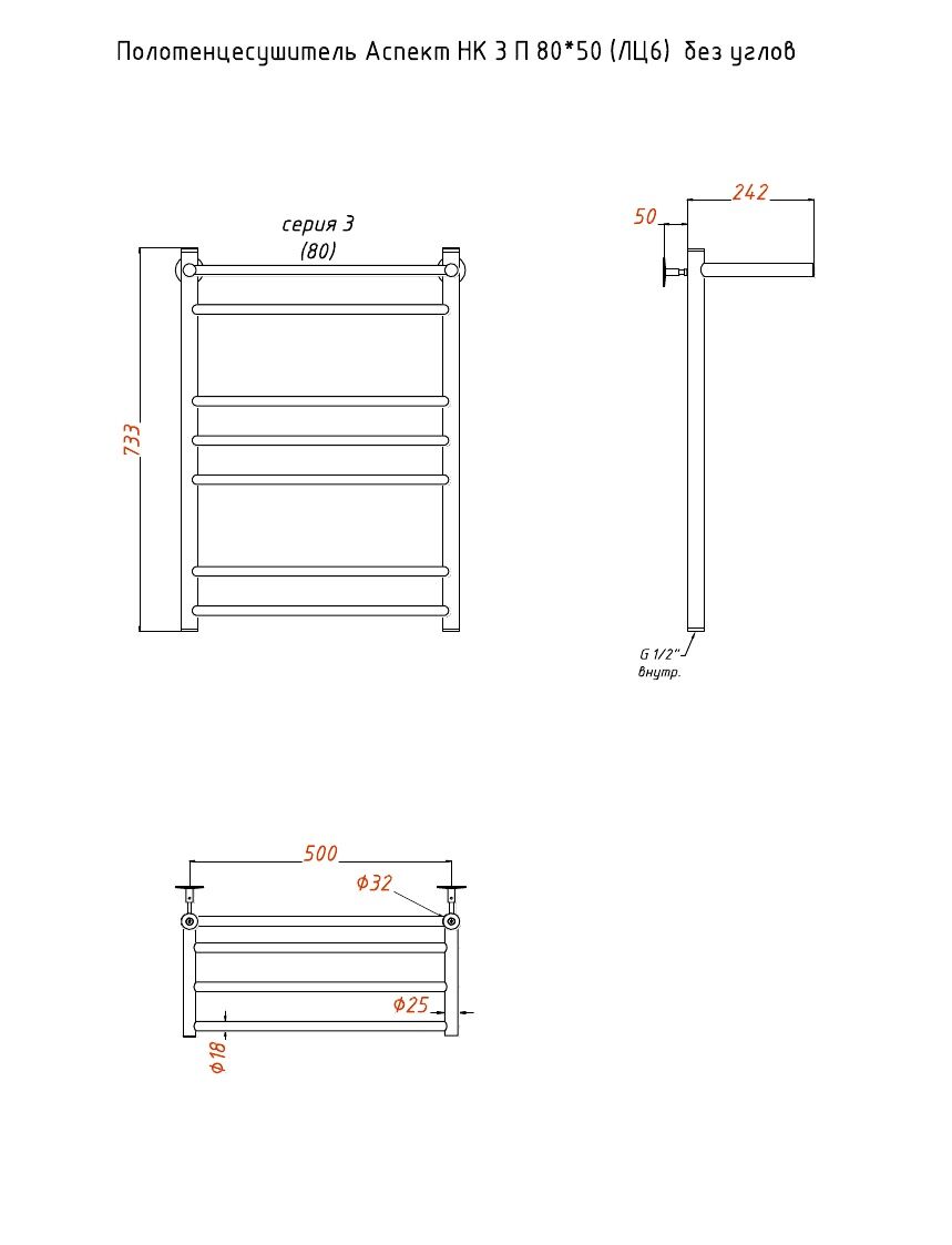 Полотенцесушитель Аспект НК 3 П 80*50 (ЛЦ6) без углов