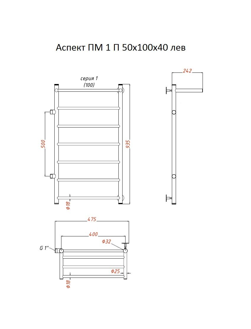 Полотенцесушитель Аспект ПМ 1 П 50*100*40 (ЛЦ6) лев