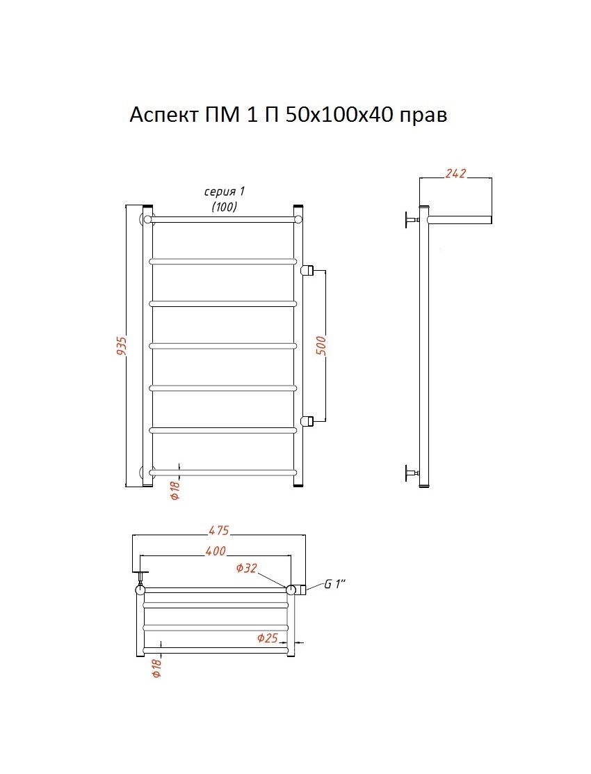 Полотенцесушитель Аспект ПМ 1 П 50*100*40 (ЛЦ6) прав