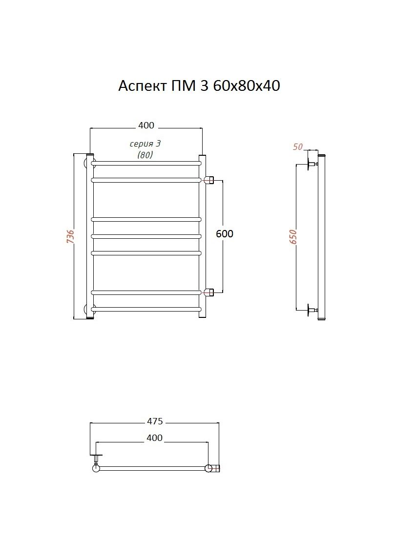 Полотенцесушитель Аспект ПМ 3 60*80*40 (ЛЦ6)