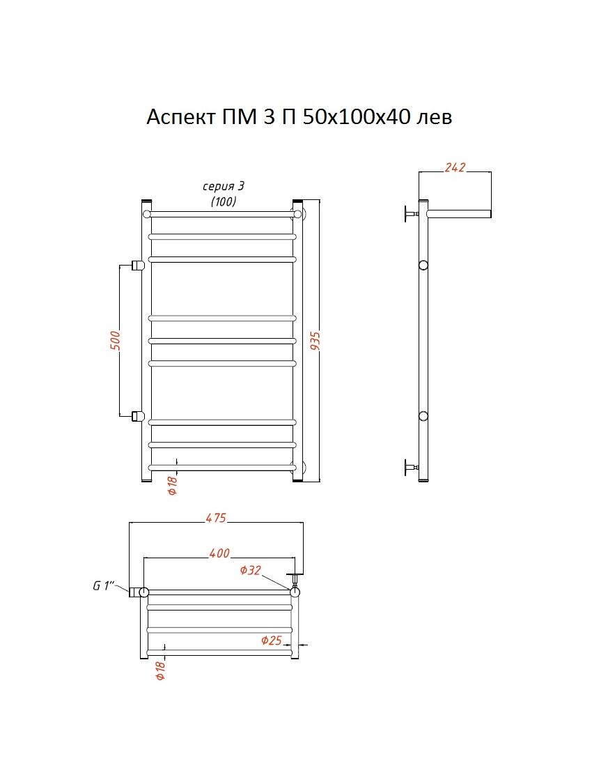 Полотенцесушитель Аспект ПМ 3 П 50*100*40 (ЛЦ6) лев