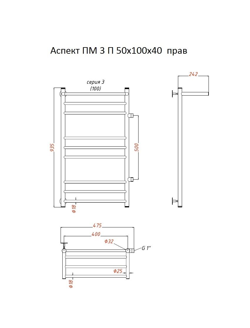 Полотенцесушитель Аспект ПМ 3 П 50*100*40 (ЛЦ6) прав