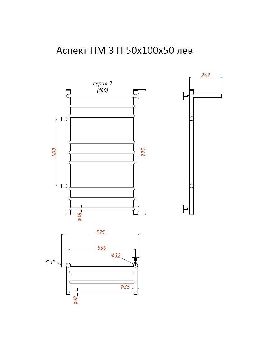 Полотенцесушитель Аспект ПМ 3 П 50*100*50 (ЛЦ6) лев