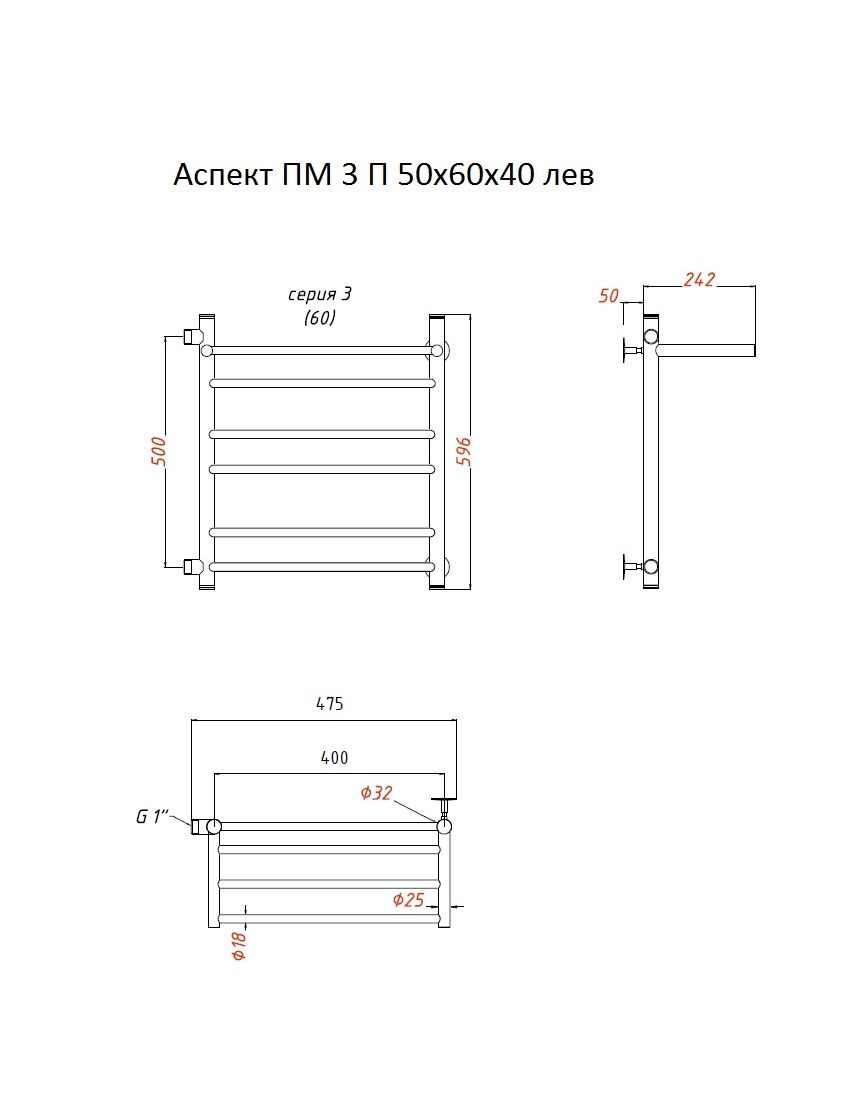 Полотенцесушитель Аспект ПМ 3 П 50*60*40 (ЛЦ6) лев