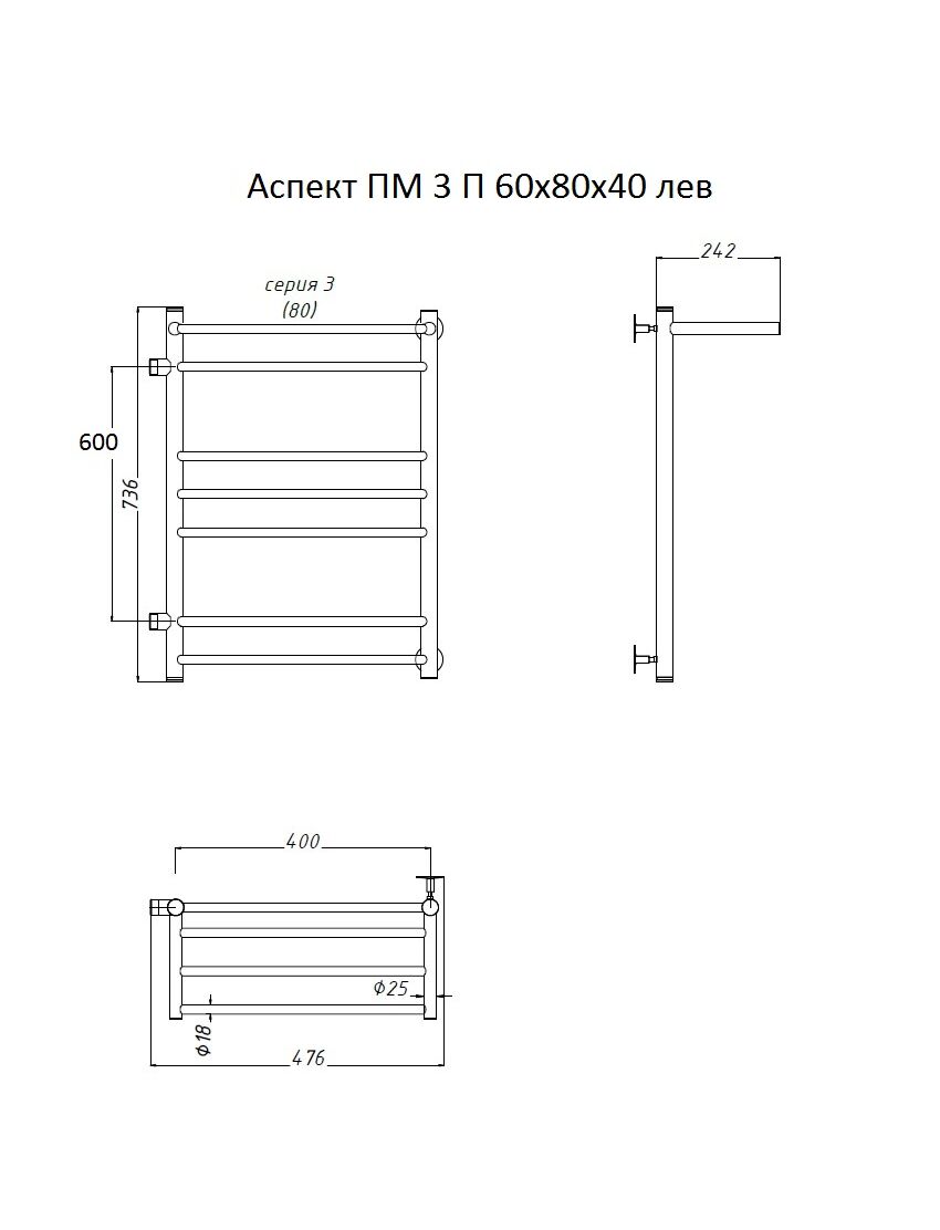 Полотенцесушитель Аспект ПМ 3 П 60*80*40 (ЛЦ6) лев