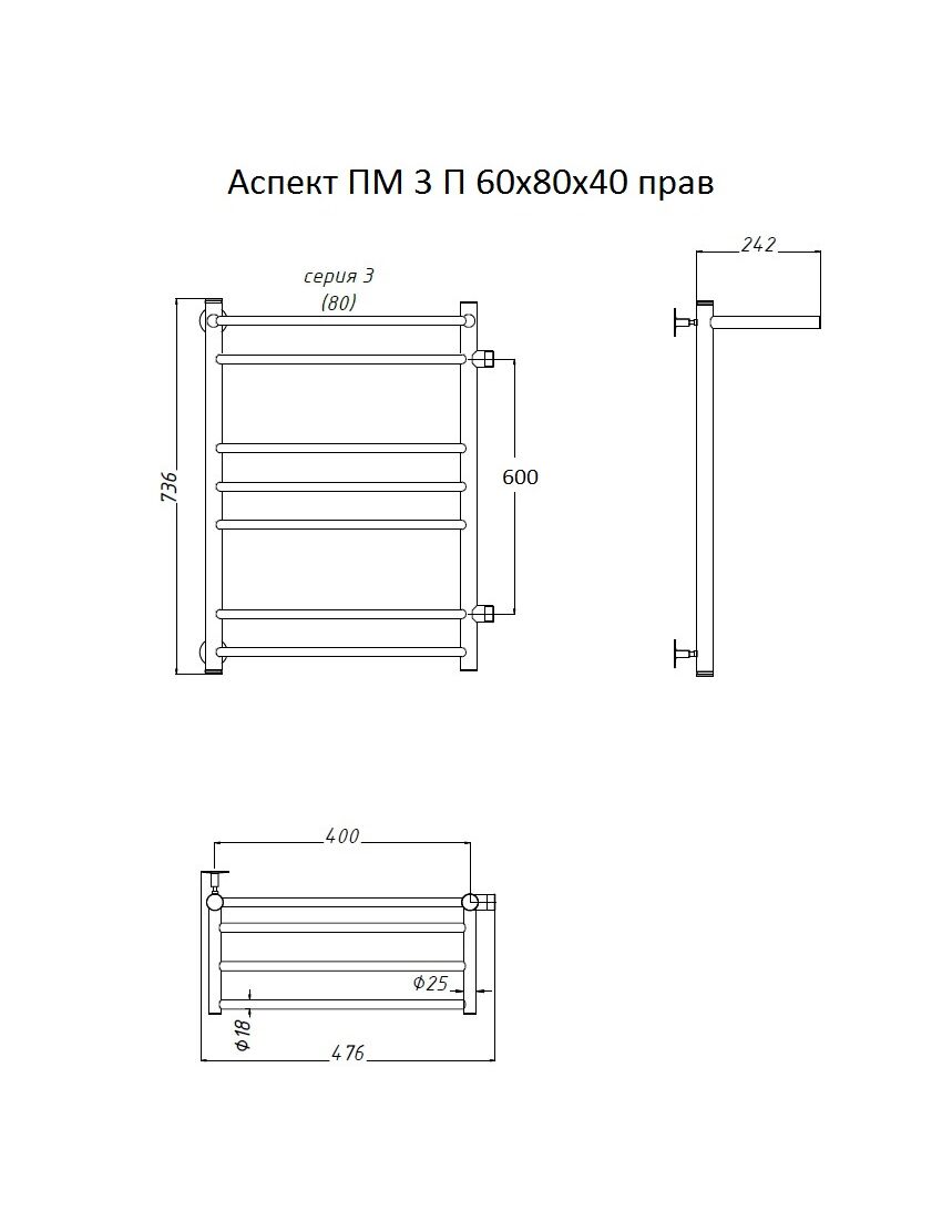 Полотенцесушитель Аспект ПМ 3 П 60*80*40 (ЛЦ6) прав