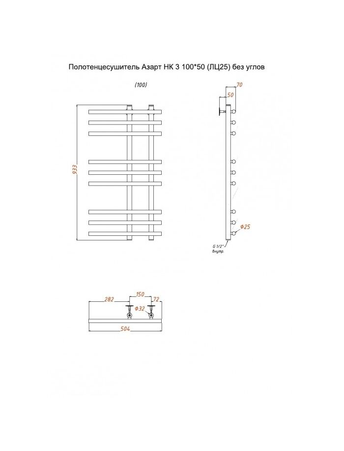 Полотенцесушитель Азарт НК 3 100*50 (ЛЦ25) без углов