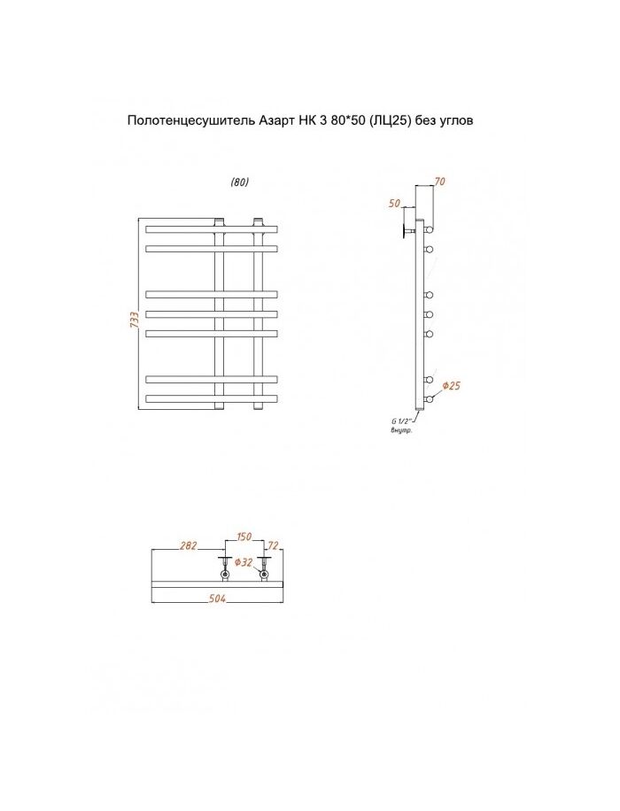 Полотенцесушитель Азарт НК 3 80*50 (ЛЦ25) без углов