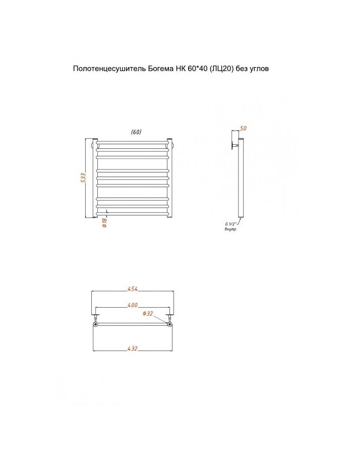 Полотенцесушитель Богема НК 60*40 (ЛЦ20) без углов