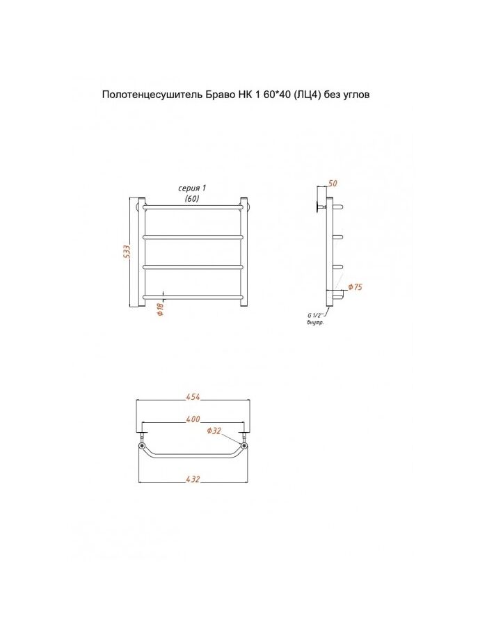 Полотенцесушитель Браво НК 1 60*40 (ЛЦ4) без углов