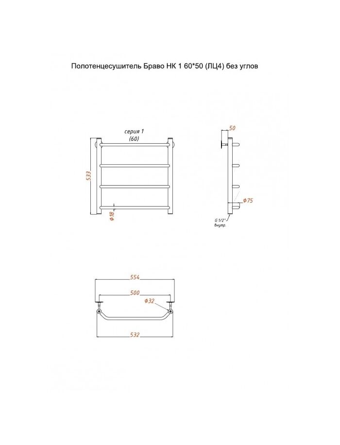 Полотенцесушитель Браво НК 1 60*50 (ЛЦ4) без углов