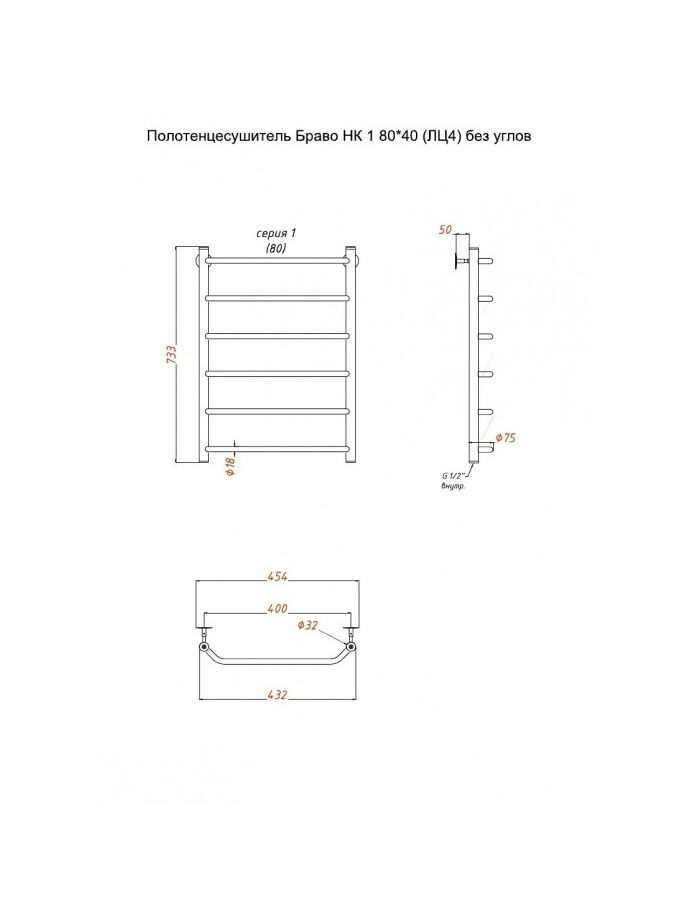 Полотенцесушитель Браво НК 1 80*40 (ЛЦ4) без углов