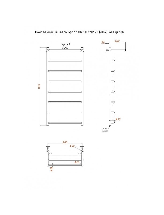 Полотенцесушитель Браво НК 1 П 120*40 (ЛЦ4) без углов