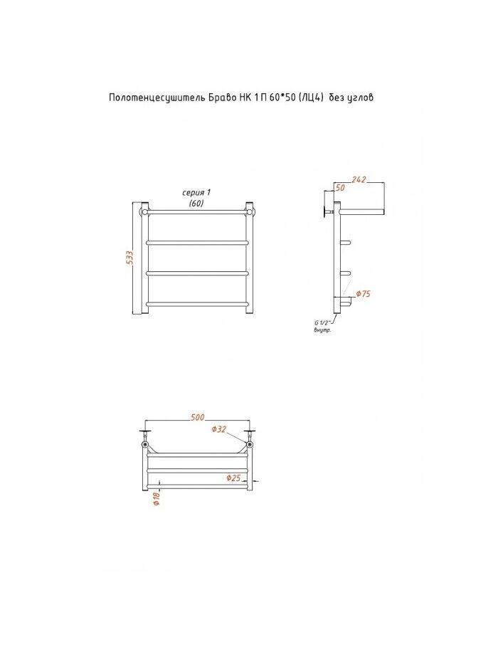 Полотенцесушитель Браво НК 1 П 60*50 (ЛЦ4) без углов