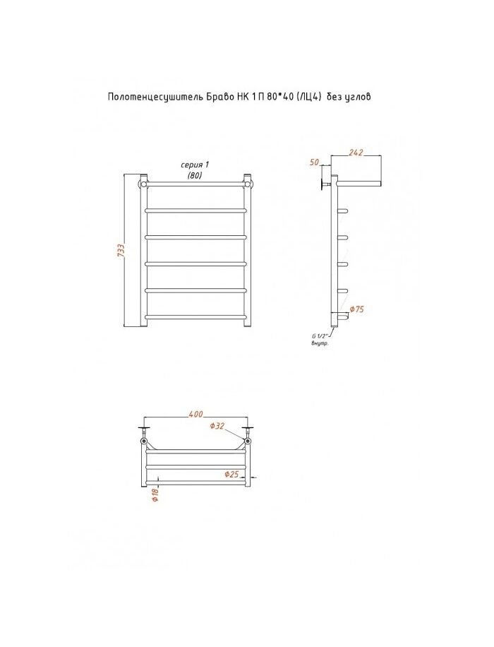 Полотенцесушитель Браво НК 1 П 80*40 (ЛЦ4) без углов