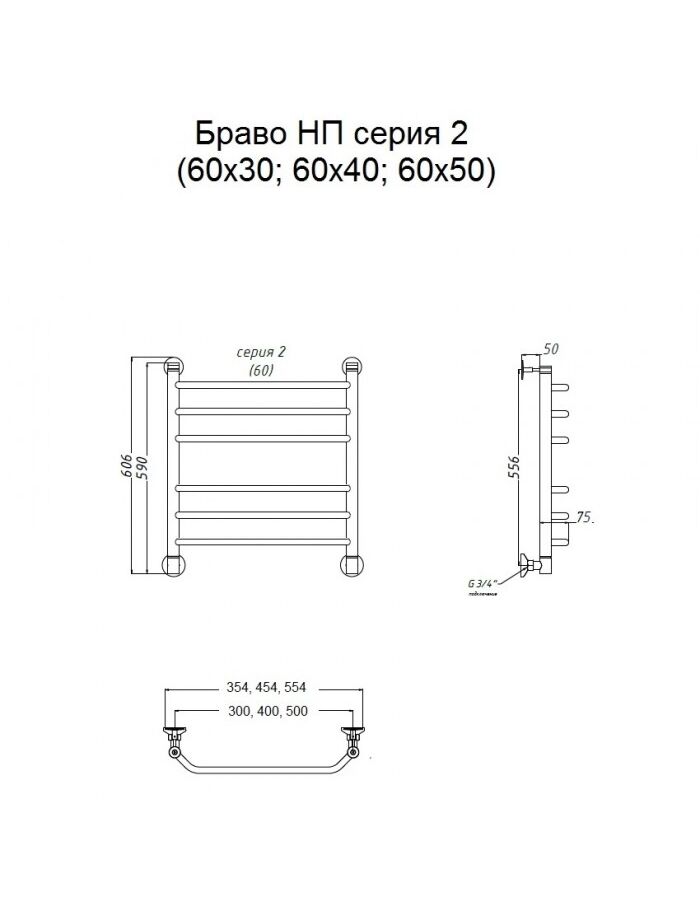 Полотенцесушитель Браво НК 2 60*30 (ЛЦ4) без углов