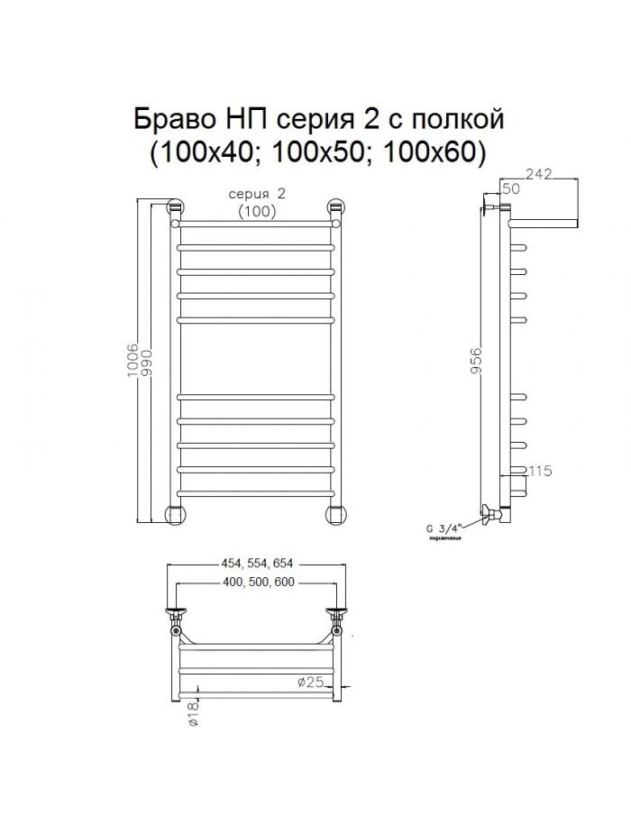 Полотенцесушитель Браво НК 2 П 100*50 (ЛЦ4) без углов