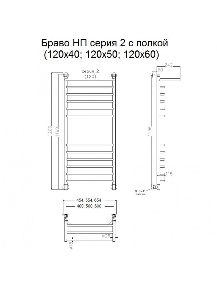 Полотенцесушитель Браво НК 2 П 120*40 (ЛЦ4) без углов