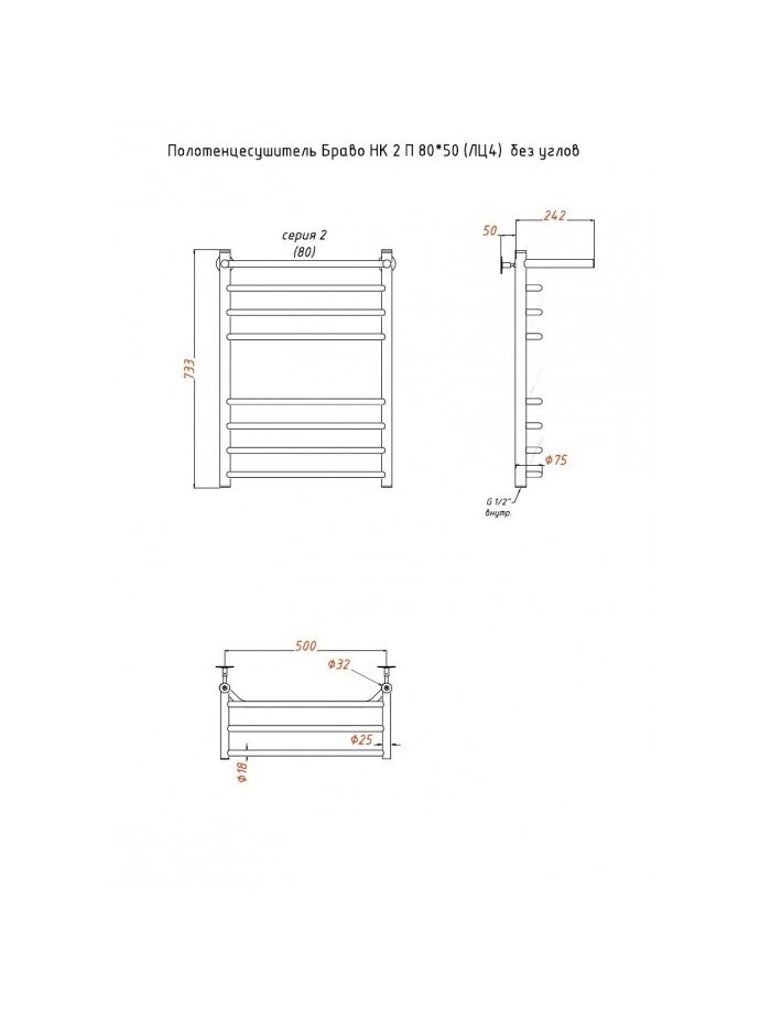 Полотенцесушитель Браво НК 2 П 80*50 (ЛЦ4) без углов