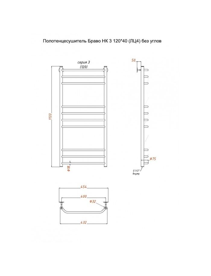 Полотенцесушитель Браво НК 3 120*40 (ЛЦ4) без углов