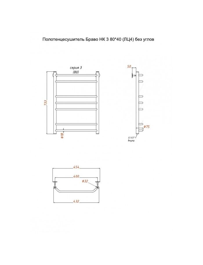 Полотенцесушитель Браво НК 3 80*40 (ЛЦ4) без углов