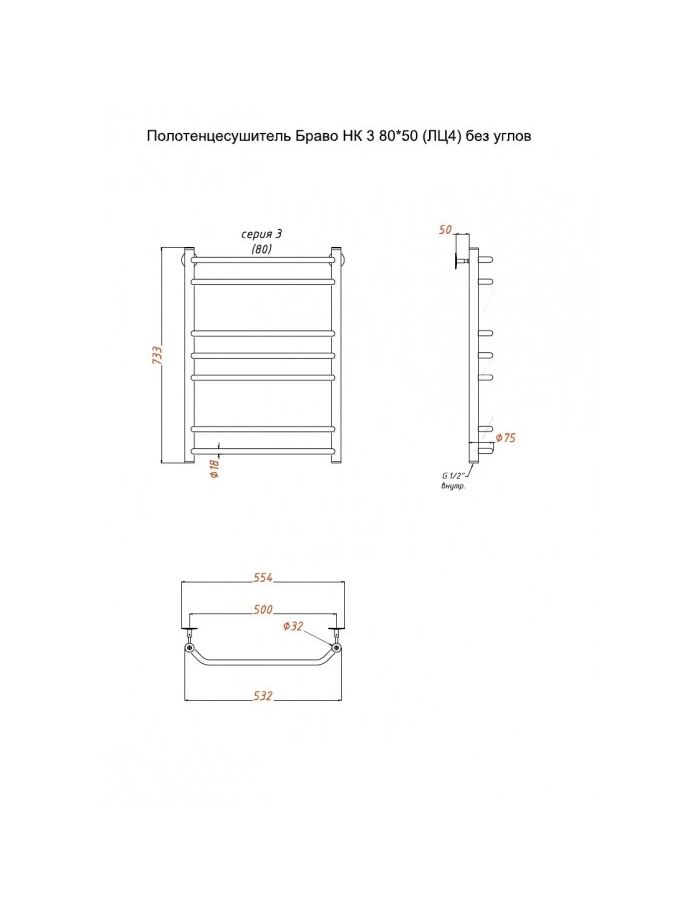 Полотенцесушитель Браво НК 3 80*50 (ЛЦ4) без углов