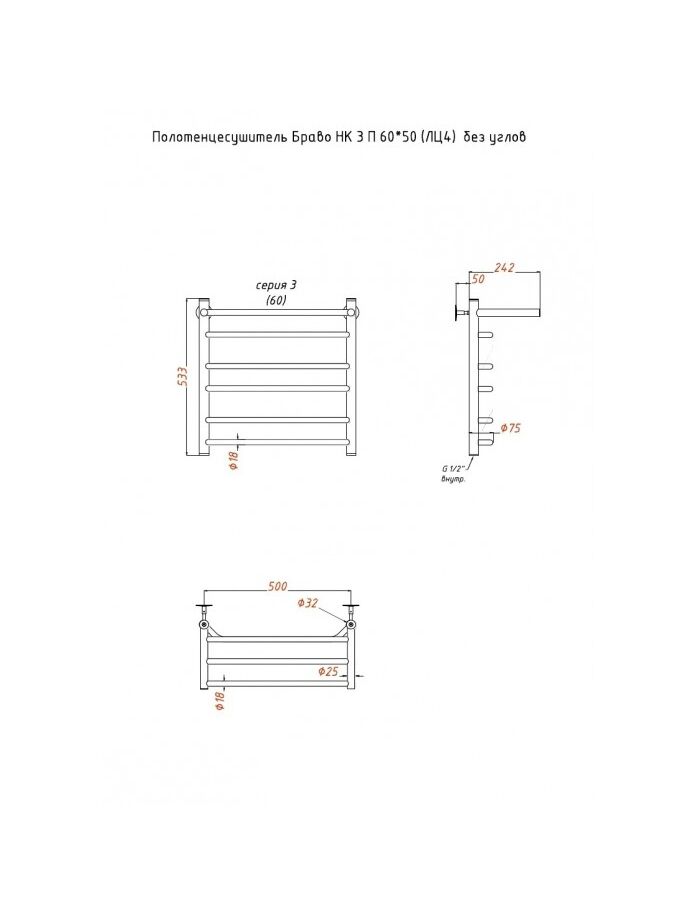 Полотенцесушитель Браво НК 3 П 60*50 (ЛЦ4) без углов