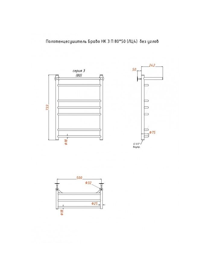 Полотенцесушитель Браво НК 3 П 80*50 (ЛЦ4) без углов