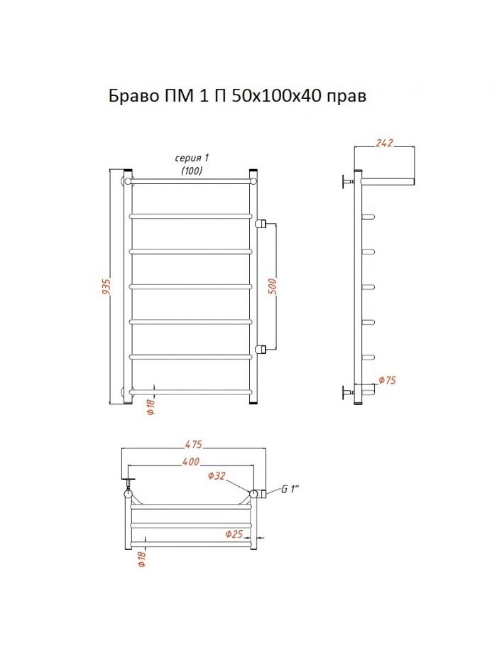 Полотенцесушитель Браво ПМ 1 П 50*100*40 (ЛЦ4) лев