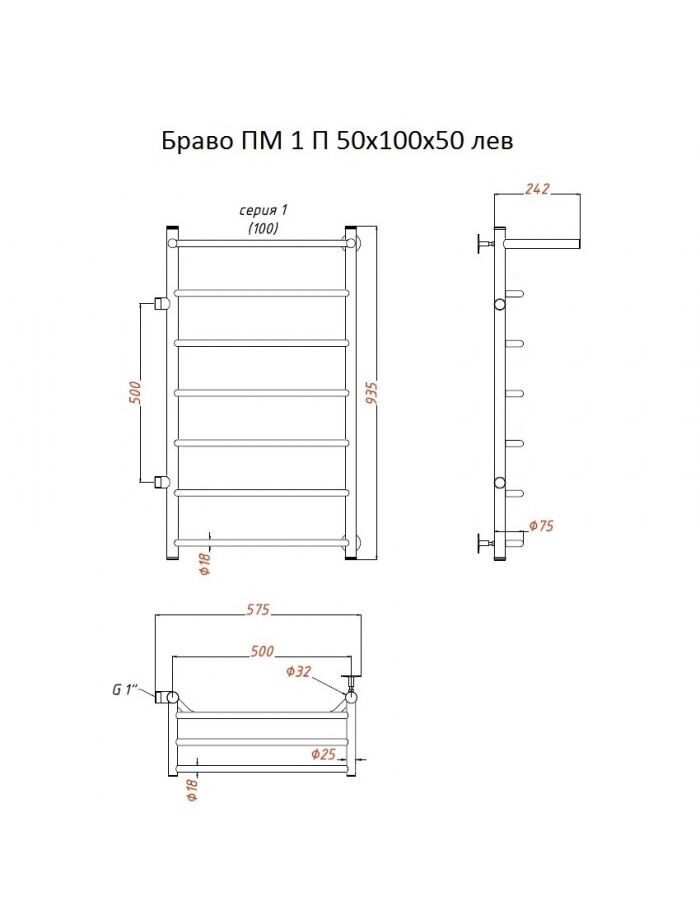 Полотенцесушитель Браво ПМ 1 П 50*100*50 (ЛЦ4) прав