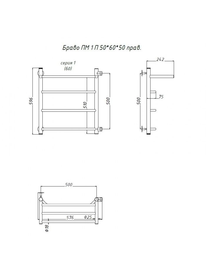 Полотенцесушитель Браво ПМ 1 П 50*60*50 (ЛЦ4) прав