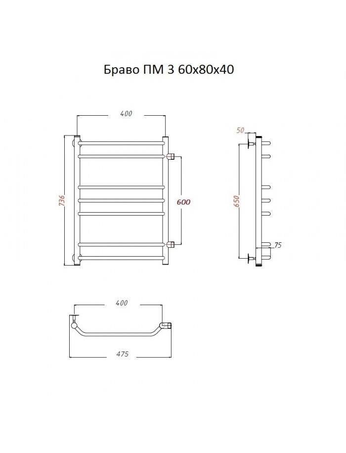 Полотенцесушитель Браво ПМ 3 60*80*40 (ЛЦ4)
