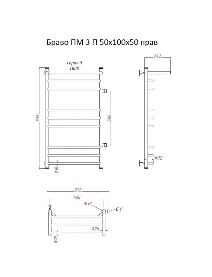 Полотенцесушитель Браво ПМ 3 П 50*100*50 (ЛЦ4) прав
